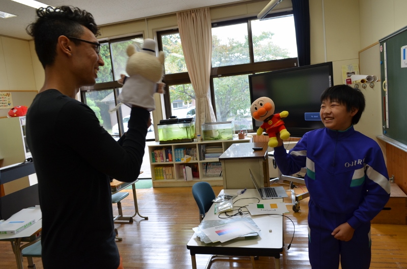 初めは、人形を使って英語で”go straight” や”turn right” などの指示の仕方を学びました。