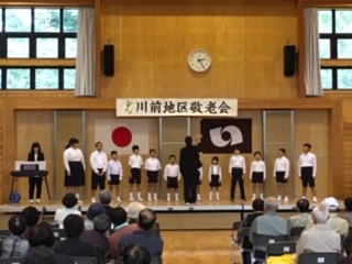 川前地区敬老会に川前小・桶売小の友だちと共に参加させていただきました。