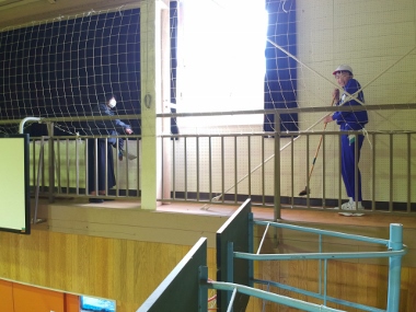高いところのギャラリーは中学生が、部室やステージなどは小学生が積極的に掃除をしていきました。