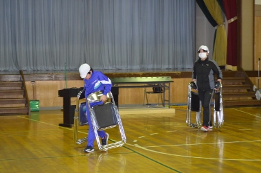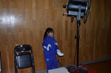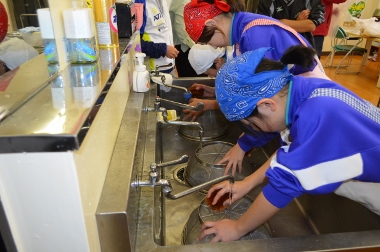 お昼に桶売小で給食を味わった後、いざ敬老会へ!