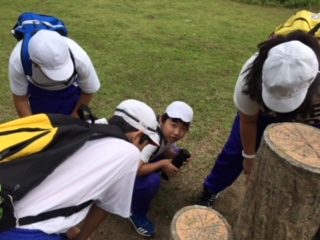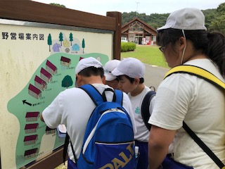 みんなで協力し、いわき海浜自然の家の敷地内を巡ります。