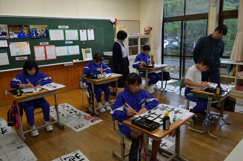 今日は、小白井小・中学校に佐藤幸弘先生が来校され、子ども達に書写の指導を行ってくださいました。