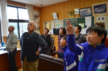 初めに地域の方々へ学校を案内しました。特に歴代の校長先生やPTA会長の写真が飾られている部屋では、思い出話に花が咲いて盛り上がっていました。