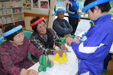 催し物では、全員で歌を歌ったり、俳句を詠んだり、バルーンアートに挑戦してみたりと、様々な内容で地域の方々との交流を深めていきました。