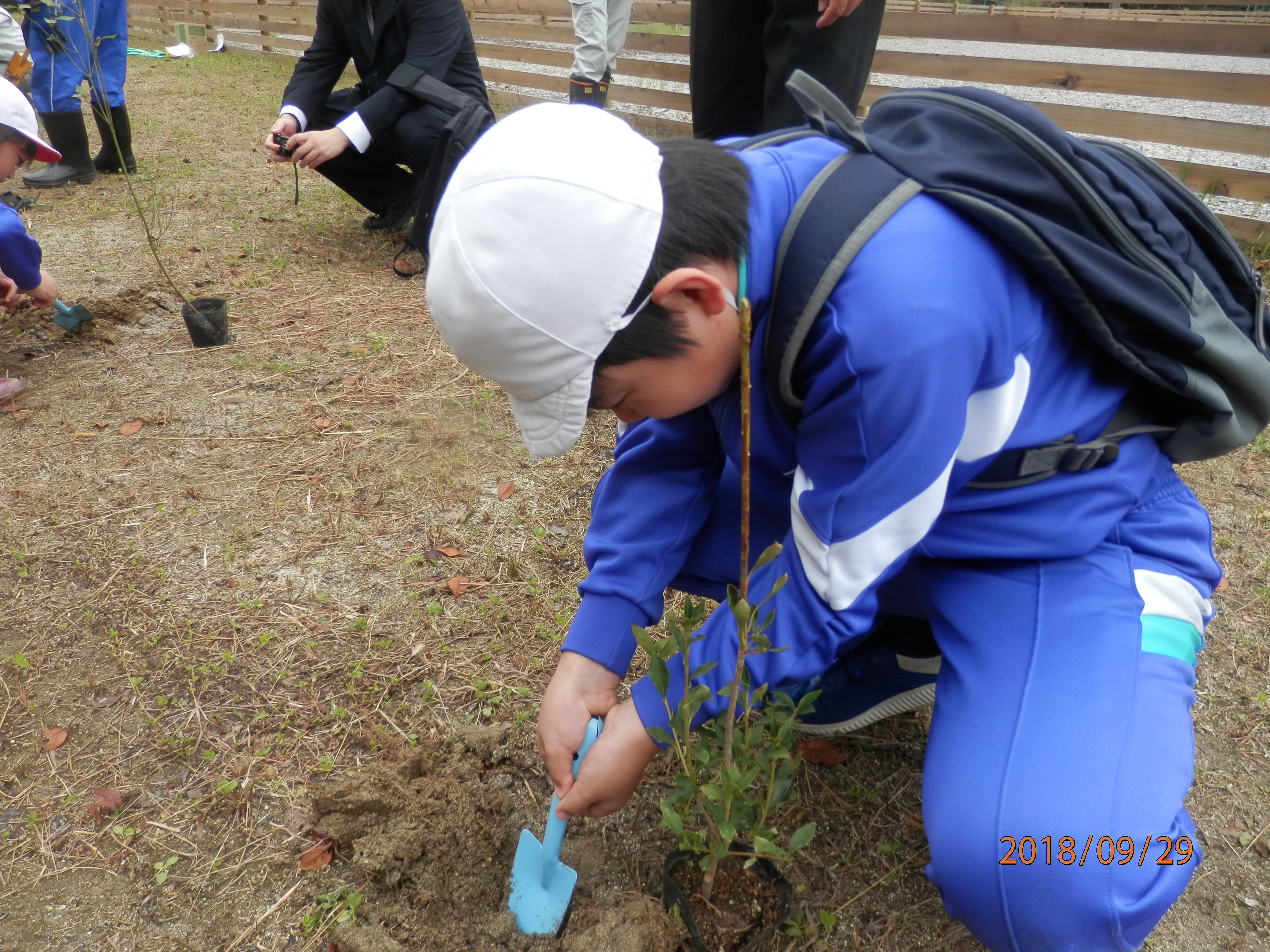 台風が少しずつ近づき、天候が心配されましたが、降雨もなく最後まで無事に参加できました。植樹祭関係者の皆様、保護者の皆様、ご協力ありがとうございました。