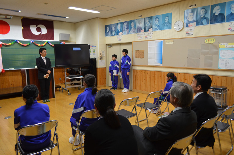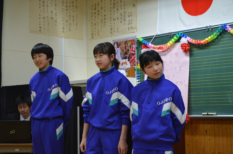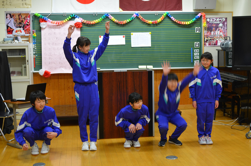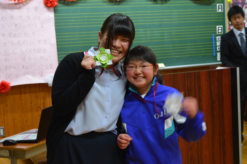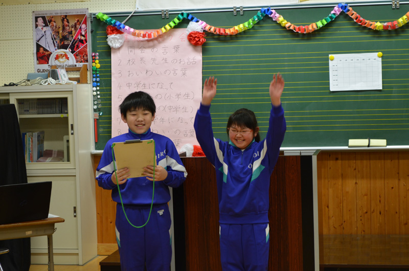 今日は、中学校と合同で進級を祝う会がおこなわれました。