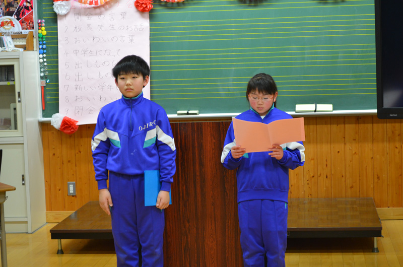 最後に小学生たちが今年度の抱負を発表しました。2人とも自分の課題を見つけ、それが出来るようになりたいと立派な目標を立てていました。今日のような進行役を上手に果たすことができた児童たちは、きっと今日発表した目標も達成することが出来ることでしょう。これからの、さらなる活躍を期待したいと思います。