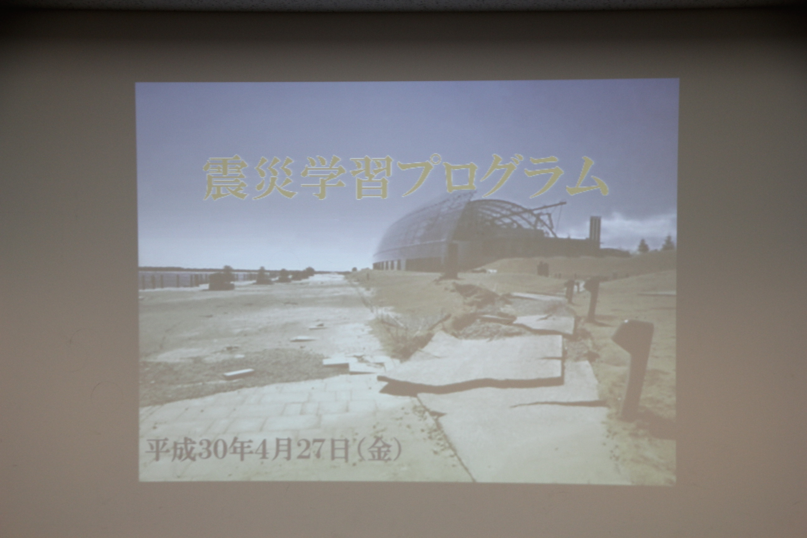 無事、到着しました。まずは職員の方による震災学習プログラムを受けさせていただきます。