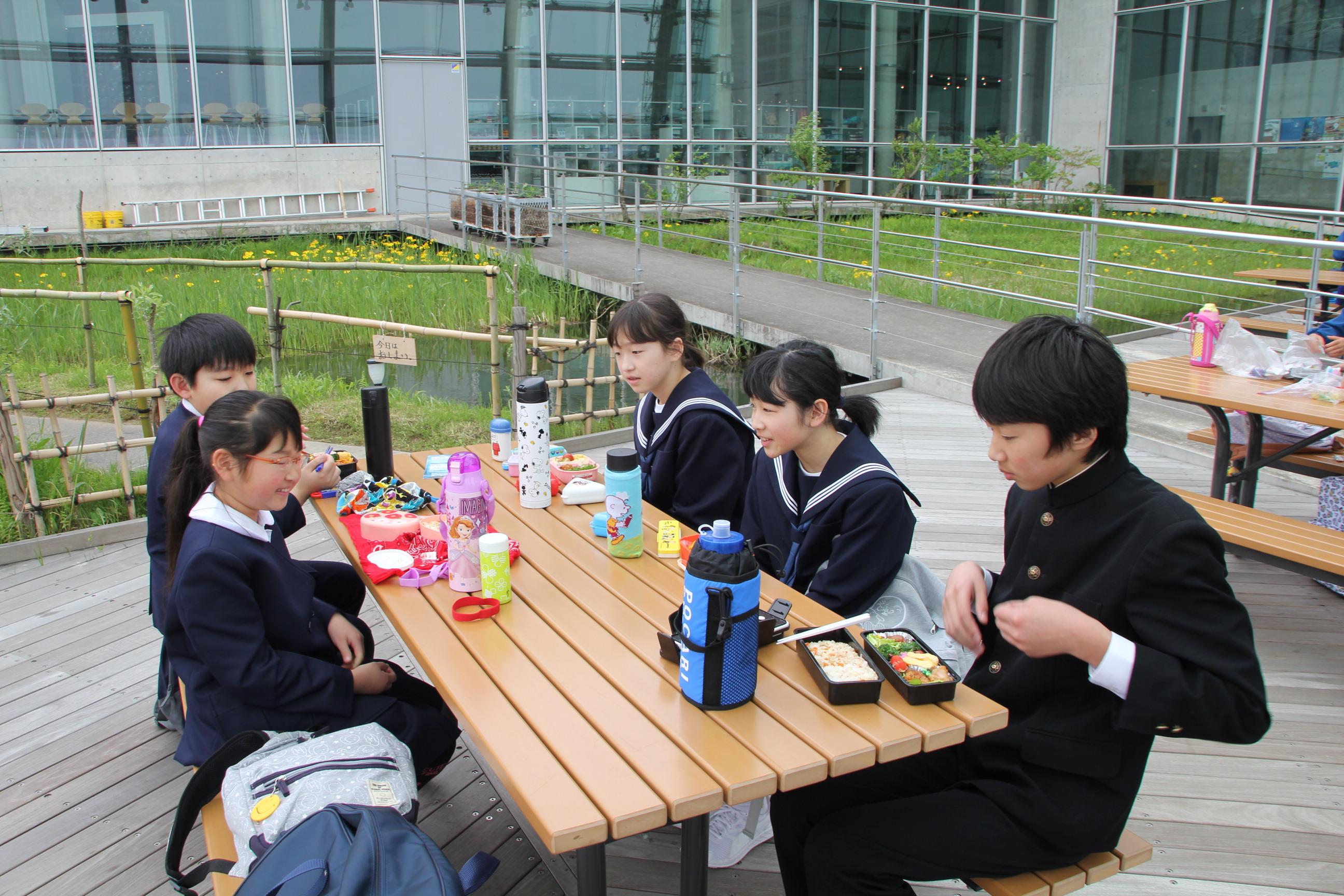 午前中の見学が終わり、お弁当の時間です。みんなで仲良く食べています。この後は、館内を見学していきます。集合時間と場所の確認が行われました。