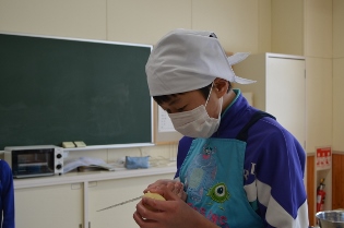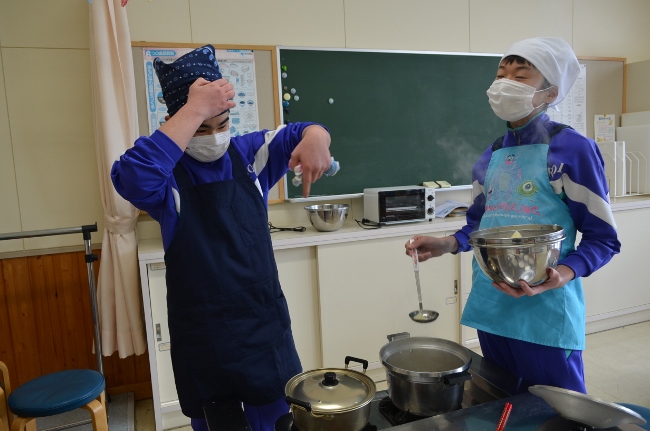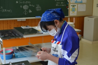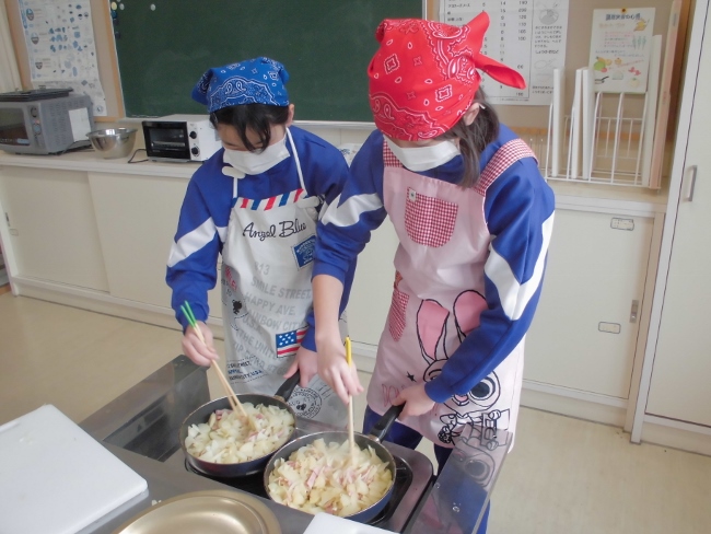 今日は、6年生の家庭科で調理実習が行われ、ジャガイモ料理を作っていました。