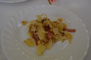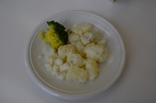 そして、一方の班はジャガイモとブロッコリーを茹でて、もう一方の班はジャガイモをタマネギと一緒に炒めていました。