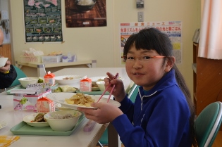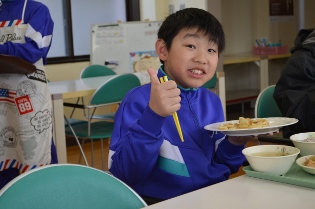 そして出来たのが、「粉ふきいも」と「ジャーマンポテト」です。出来た料理は、給食の時間に4・3年生も一緒にいただき、子どもたちは良い笑顔で「おいしい!」と言ってモリモリと食べていました。
