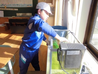 小白井小学校では30匹のメダカを飼っていて、今日は児童がメダカの水槽の掃除をしていました。