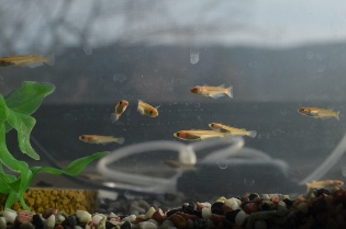 きれいになった水槽に入るとすぐ元気にメダカは泳いでいました。児童もしっかりとお世話をすることができて、満足していた様子でした。