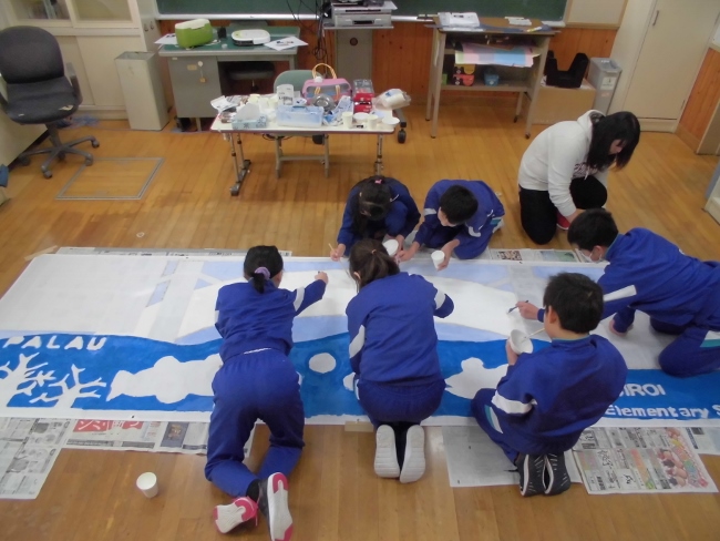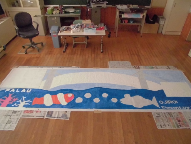 太平洋・島サミット歓迎横断幕の作成も着々と進んでいます。前回は海を塗りおえたので、