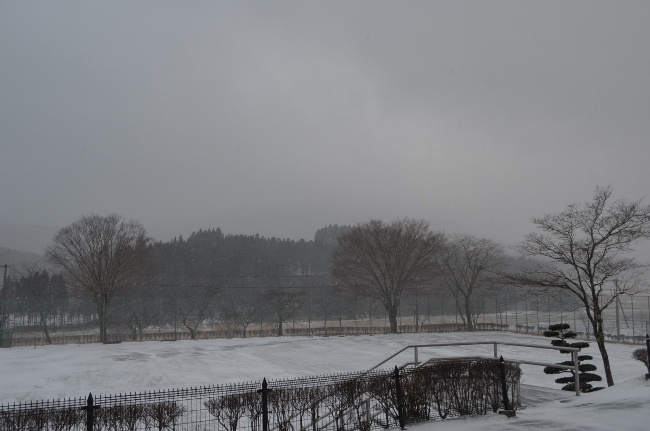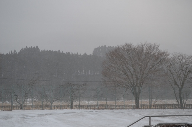 久しぶりの雪で、見えていた校庭の土も隠れてしまいました。