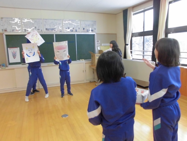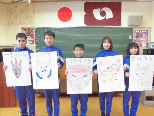 子どもたちは元気よく「鬼は外~!」「福は内~!」と大声で自分の鬼に向かって豆をぶつけていました。今年の鬼たちも個性豊かでしたが、しっかりと退治できたようです。明日からは、また1つ良い生活が送れると良いですね。