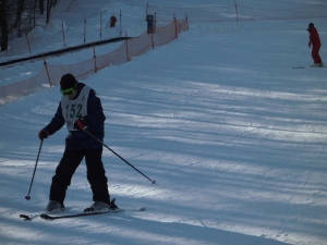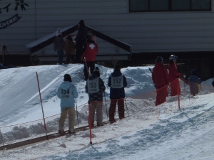 そして、緩斜面でボーゲンの練習をしました。上手に止まれずに苦労しましたが、午前中がんばりました。