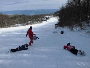 午後は、リフトに乗り雪の斜面を楽しみました。転がったり、体ごと滑り落ちたり思う存分雪を堪能しました。