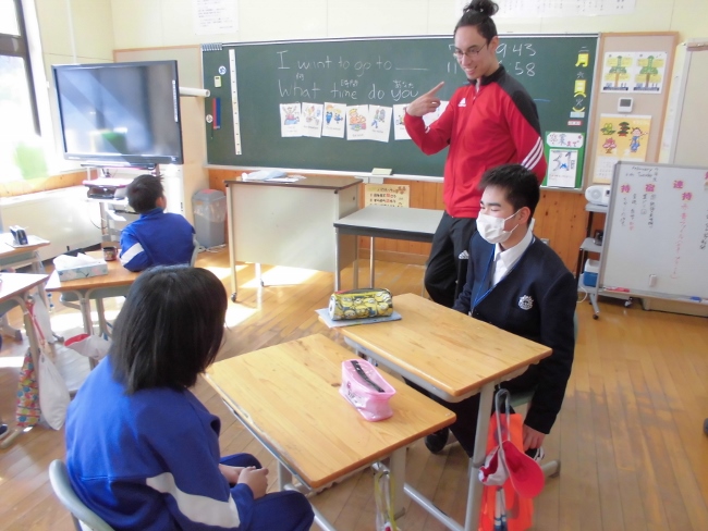 今日は、ALTの先生が来校され、子どもたちに英語の授業をしてくださいました。今日学んだ文は What time is it ? (何時ですか)です。
