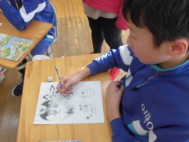 また、前回も行ったアルファベットの練習も行い、キャラクターの英語名をみんなで考えていました。好きなキャラクターだとやる気がいつも以上に出て、英語を堪能した子どもたちでした。