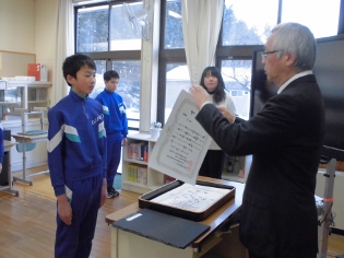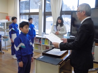 書道コンクールでは児童ら全員が入選したため、みんなが賞状を受け取りました。さらには、学校奨励賞までもをいただくことが出来ました。これも、みんなが頑張ったからですね。