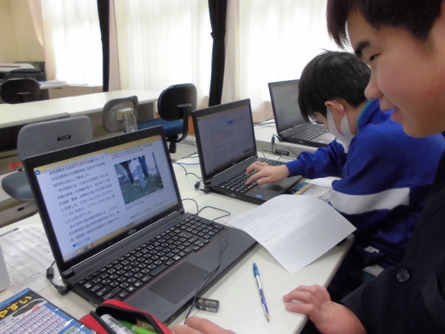 国の場所や、歴史、習慣など分担をして調べていました。