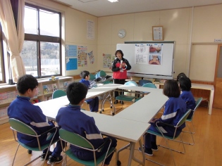 また、給食の時間は栄養士の先生がいらっしゃって、食育の講義を行ってくださいました。