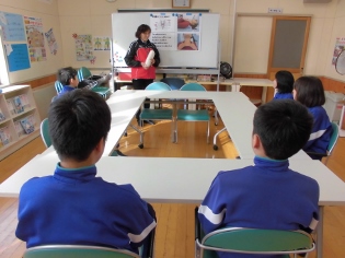 学校給食がいつ頃から始まって、今の給食の形になるまでにどんな歴史があったのかを、来週から始まる学校給食週間に絡めてお話ししてくれました。学校給食週間では毎日特徴のある給食が出るそうなので、今から楽しみな子どもたちでした。
