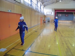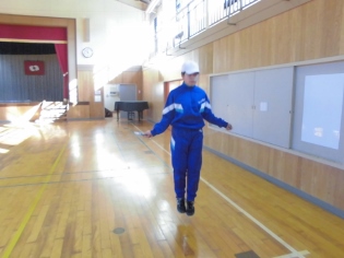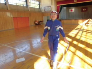先月から子どもたちは、体育や朝の活動として縄跳びをしています。跳び方ごとに級が設定されており、すべてのマスターを目標に練習を行っています。