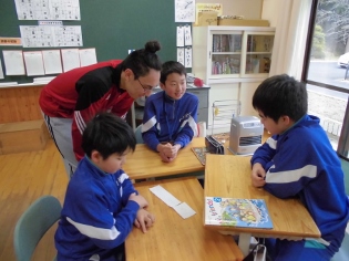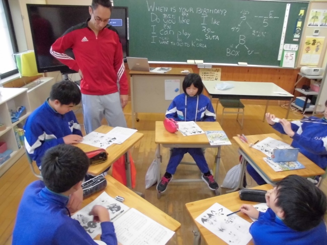 ALTの先生にヒントをいただきながら、子どもたちは楽しんで復習をしていきました。また、今日はポケモンの英語名をALTの先生のしゃべる言葉を聞きながら、アルファベットで書くことに挑戦していました。