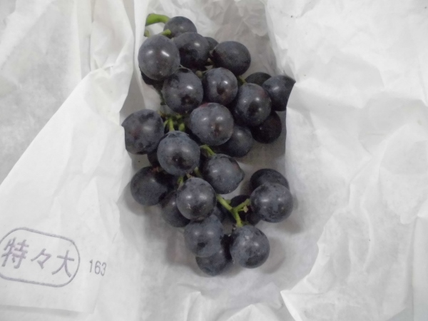 粒が大きく輝いていて、美しい宝石のようです。「ふじみのり」という品種だそうです。食べての感想は、また後日ご報告させて頂きます。