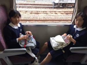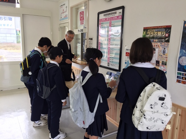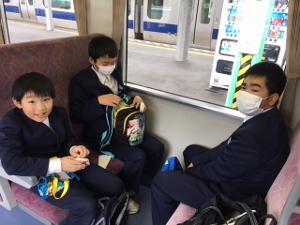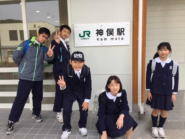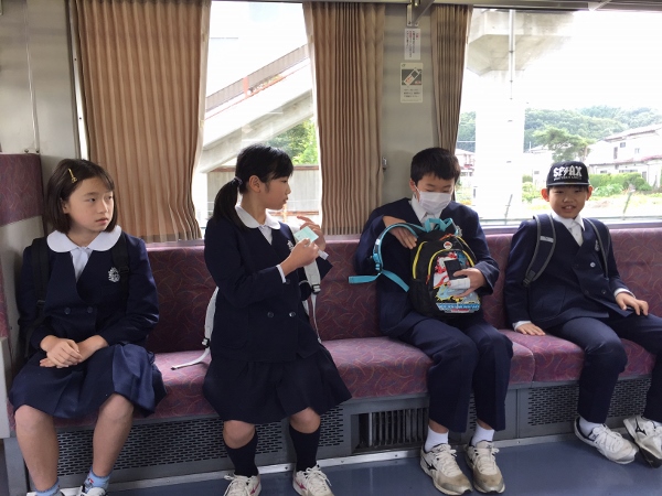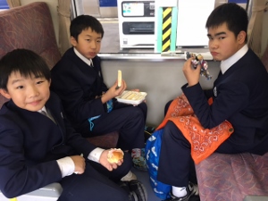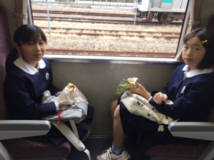 劇団四季「こころの劇場」観劇に出発した子ども達。神俣駅から磐越東線で移動です。