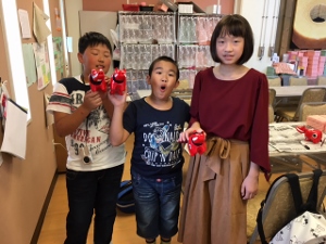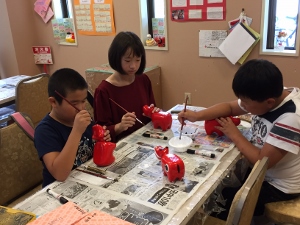 午後は、赤べこの絵付けを行いました。上手に完成できました。