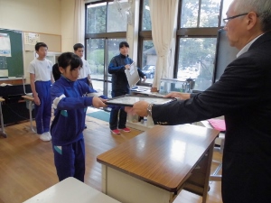 過日、お知らせをしました、いわき市理科作品展の表彰を昨日のさわやかタイムで行いました。