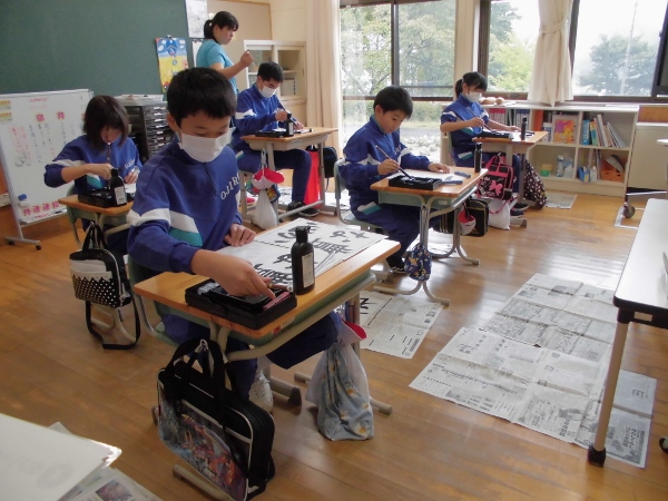 また、今回は、児童全員に大筆小筆もプレゼントして頂き、子ども達のやる気もさらに向上していました。