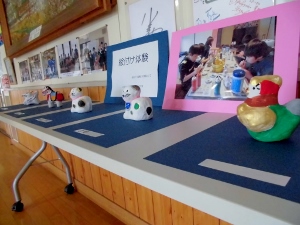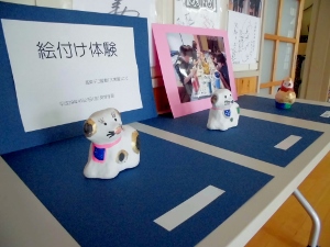 先日の見学学習で体験した、絵付けの作品を玄関に展示しました。