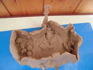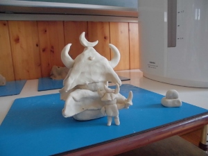 図工の時間に夢のお城を作っていました。どんな、夢のお城なのでしょう。 これは勇ましい兜のイメージですね。
