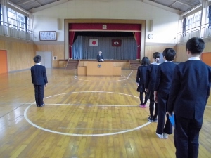修了式が行われました。中学生が卒業し、小学校だけでの式となりました。