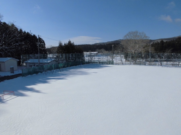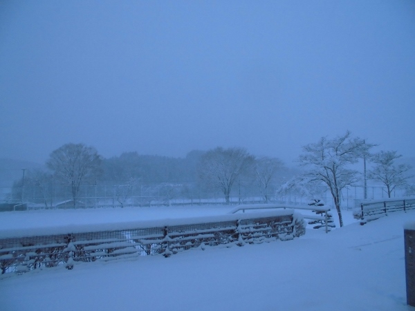 乾いたと思った校庭も雪で真っ白に逆戻りです。