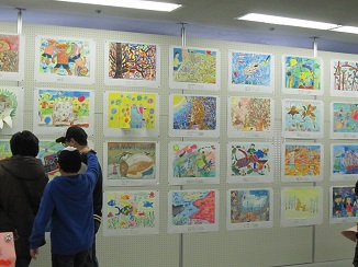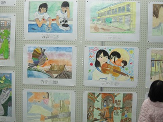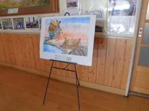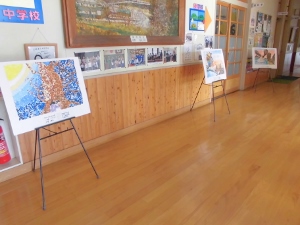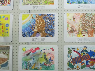 2学期に児童が図工の時間に取り組んだ絵画作品がいわき文化センターに、「小白井神楽」を彫った版画がいわき市立美術館に展示されました。