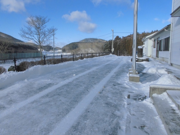 朝、小学生と先生方で雪かきをしてきれいになりました。
