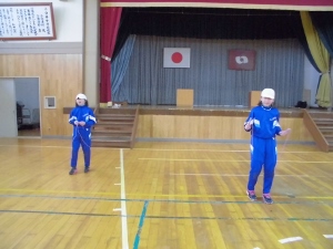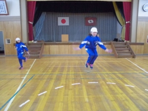 息も凍るような体育館でも子どもたちは、元気に縄跳びをがんばっていました。