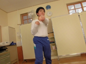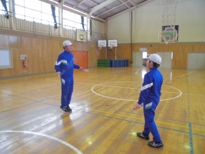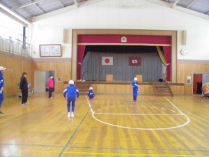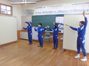 発表に向けて特訓中だとか。リーダーの児童に合わせてみんな一生懸命練習していました。