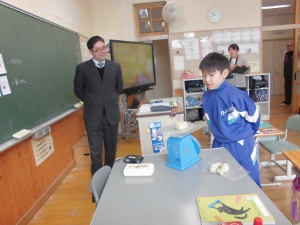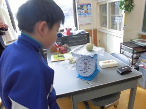 3時間目は、3年生は理科の研究授業でした。物の重さを向きや形を変えて比べていました。