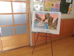 いわき児童造形展覧会に展示されていた3作品を玄関に展示しました。