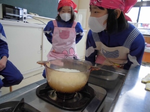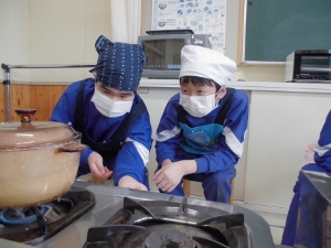 今日の家庭科では、ご飯を炊きました。米とぎからお鍋で炊きあがるまで、初めて体験することもありましたが上手に炊けました。
