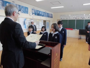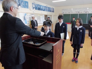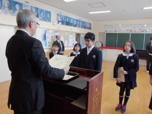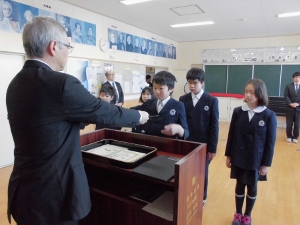 2017年1月30日 15時50分今日は、合同集会が行われました。集会に先立ち表彰を行いました。