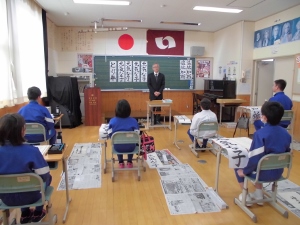 今日の給食の時間は、栄養士の方が来校されて給食の歴史についてお話してくださいました。