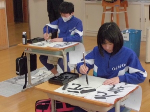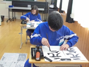 一言も話さず取り組む姿はすばらしいものです。そのおかげで、冬休みに練習してきたものよりも、上手に書けていました。